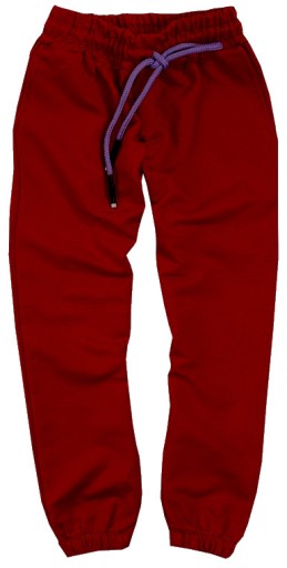 Krój: spodnie dresowe, w pasie na szerokiej gumie, z dodatkowym, troczkiem do ściągnięcia, na dole w nogawkach ściągacz, po bokach dwie kieszenie.
