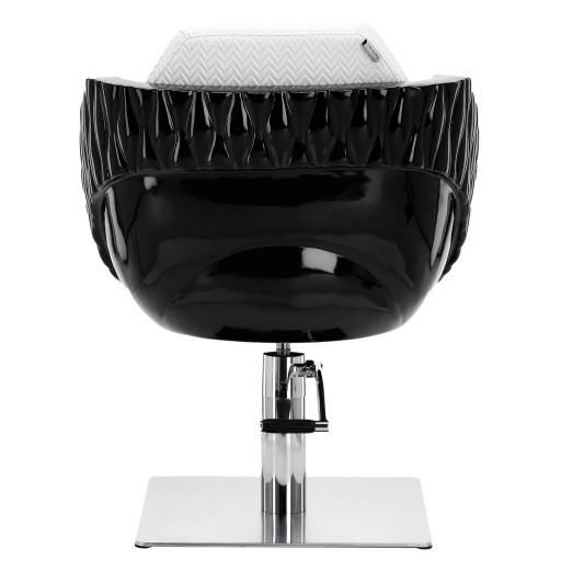 Fotel charakteryzuje się eleganckim i ergonomicznym designem, który pozwala na wygodną pracę fryzjera oraz relaks klientów.