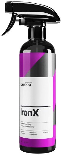 Płyn o neutralnym pH przeznaczony do usuwania zanieczyszczeń metalicznych z powierzchni lakieru samochodowego oraz felg. Zanieczyszczenia przemysłowe i metaliczne takie jak opiłki metalu z szyn kolejowych lub tarczy hamulcowych wbijają się w powierzchnię lakieru stanowiąc ogniska korozji. Iron X usuwa zanieczyszczenia metaliczne rozpuszczając je.