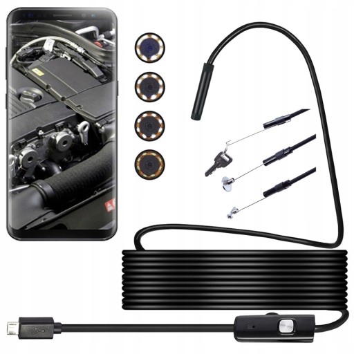 Dzięki kamerze inspekcyjnej zobaczysz miejsca niedostępne w żaden inny sposób. Kamęrę można podłączyć do telefonu / tabletu z Androidem (zgodnego ze standardem OTG) ze złączami micro USB lub komputera. Kamera posiada wbudowane 6 diod LED dzięki czemu możemy jej używać w zaciemnionych miejscach.
