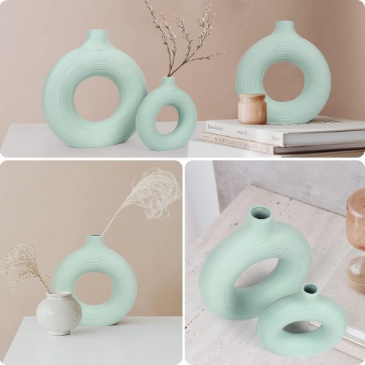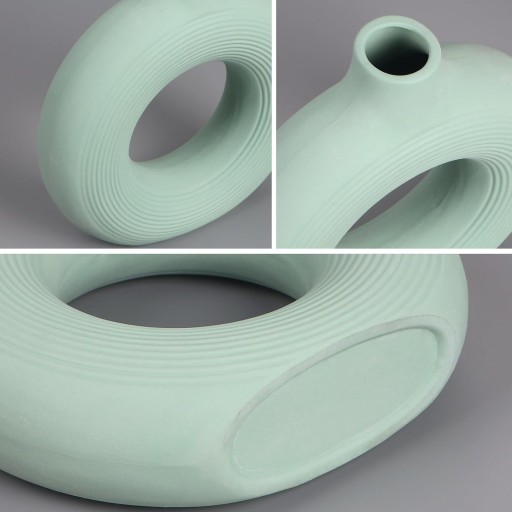 Wazon w kształcie donuta do trawy pampasowej, zielony ceramiczny wazon w 3 rozmiarach, matowy wazon pierścieniowy do nordyckiej nowoczesnej dekoracji.