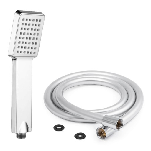 Kwadratowa słuchawka prysznicowa wykonana jest z trwałego tworzywa w kolorze chromu. Wygodna w użytkowaniu a jej prosty kształt pasuje do łazienek wykończonych w nowoczesnym, minimalistycznym stylu. Dodatkowo konstrukcja słuchawki wpływa na zmniejszenie zużycia wody.