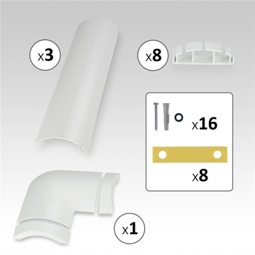 3 panele listwowe po 40,6 cm, 1 kolanko, 2 zaślepki