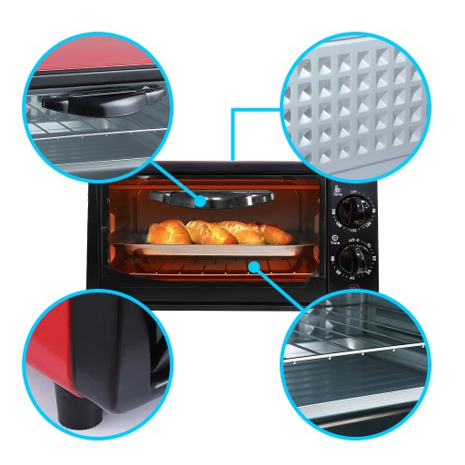 Piekarnik jest niezastąpionym i niezbędnym narzędziem, dla każdego miłośnika gotowania lub pieczenia ciast. Dzięki naszemu Mini piekarnikowi, szybko przygotujesz każdy rodzaj posiłku w kryzysowych sytuacjach. Szeroki zakres temperatury zadba o to, żeby twoje potrawy zostały świetnie przyrządzane. Jego kompaktowe rozmiary, zaoszczędzą dużo przestrzeni w twojej kuchni, dzięki czemu zwiększysz powierzchnie swojego blatu roboczego.