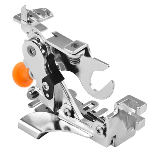 Stopka do maszyn domowych do szycia z chwytaczem wahadłowym i rotacyjnym. Stopka do wykonywania zakładek i marszczenia z regulacją częstotliwości i głębokości (szerokości) zakładek.