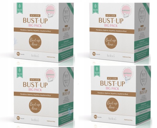 NeW LooK Bust-Up Big Pack jest naturalnym preparatem pochodzenia roślinnego specjalnie opracowanym do powiększenia oraz ujędrnienia kobiecego biustu. Dzięki specjalnie dobranym składnikom oraz obecności w preparacie ekstraktu z czerwonej koniczyny/Trifolium pratense/, kuracja powiększająca i ujędrniająca biust powoduje również inne korzyści dla naszego organizmu. Oprócz efektu powiększania i ujędrniania piersi, następuje wygładzenie skóry oraz znaczący wzrost włosów i paznokci.