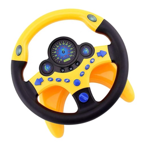 A fun, sturdy, interactive toy steering wheel with lots of realistic functions, like a turn signal, alarm button