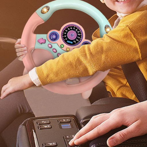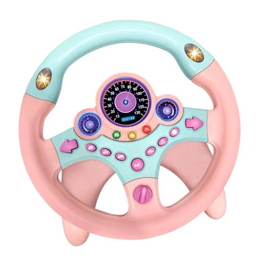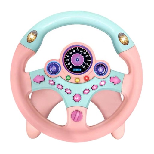 A fun, sturdy, interactive toy steering wheel with lots of realistic functions, like a turn signal, alarm button