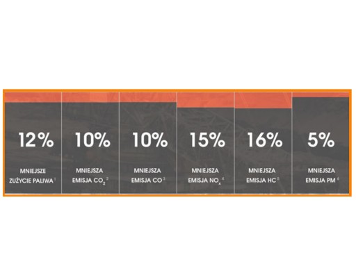 - Mniejsze zużycie Paliwa od 5% do 7% Podwyższa liczbę Cetanową z 48 do nawet 60 (w zależności od Oleju bazowego)