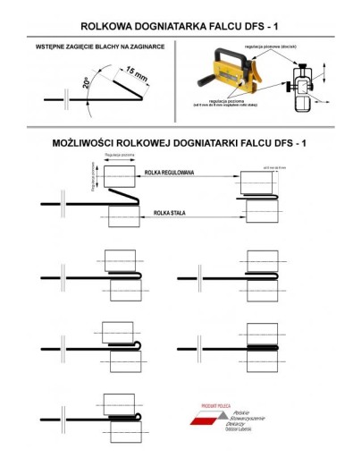 - Rolkowa dogniatarka (felownica) DFS-1 bardzo szybkie i wygodne narzędzie, służące do dokładnego dociśnięcia zagiętego wcześniej felcu w jednym cyklu roboczym.