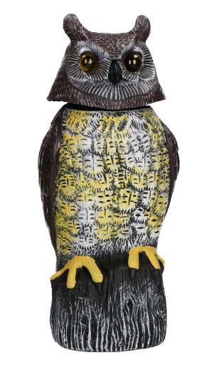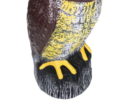 Makieta groźnej sowy odstraszającej ptaki doskonale sprawdza się jako odstraszacz gołębi, kruków i innych ptaków w polach uprawnych, elewacjach, ogrodach lub sadach.