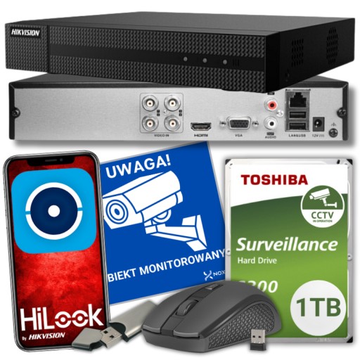 REJESTRATOR 4 KANAŁOWY + 1 TB DYSK + AKCESORIA