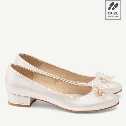Buty na płaskim obcasie z perłową ozdobą - idealny wybór na Twój ślub.