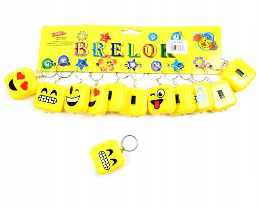 ŚWIECĄCY BRELOK DO KLUCZY PLECAKA TOREBKI ZAWIESZKA EMOTKI ZESTAW 12SZT