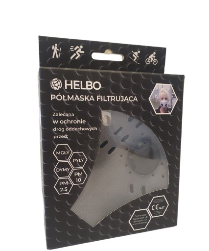 Oferta dotyczy 1 szt. neoprenowej maski antysmogowej z wymiennym filtrem firmy HELBO. kolor Szary