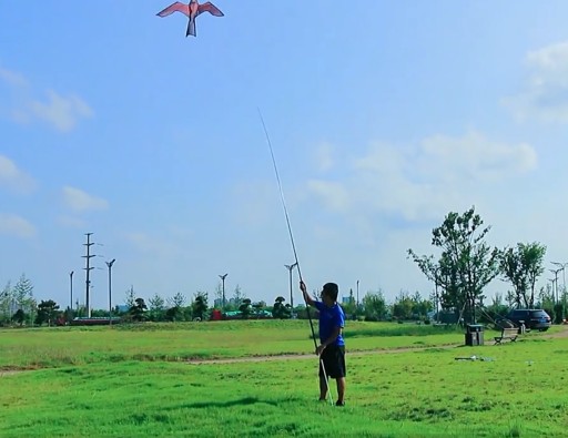 - latawiec wznosi się w powietrze już przy wietrze o prędkości 2km/h, makieta unosi sie w nieregularny sposób, co uniemożliwia przyzwyczajenie się ptakom do jego obecności,