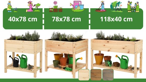 Donice znajdują zastosowanie jako inspekty do wzrostu sadzonek przed przeniesieniem ich do gruntu. Mogą pełnić funkcję warzywniaka ogrodowego w altanie, szklarni lub na zewnątrz. W przypadku umiejscowienia ziołownika na zewnątrz zalecamy zaimpregnowanie go przed działaniem warunków atmosferycznych.
