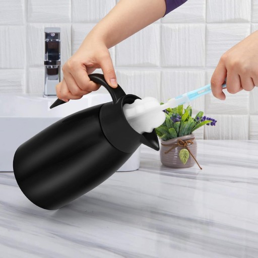 🥛☕🍵 ŁATWA W CZYSZCZENIU I DARMOWA SZCZOTECZKA W ZESTAWIE: Ta termiczna karafka do kawy jest odporna na rdzę i kwaśne napoje. Nie zatrzymuje plam ani zapachów. Przygotowaliśmy również bezpłatną szczoteczkę do czyszczenia, która jest wygodna do czyszczenia. (Kolory szczotek są losowe)