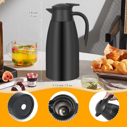 🥛🥛 12HR HOT & 24HR COLD: Karafka do kawy wykorzystuje zaawansowaną technologię izolacji próżniowej o podwójnych ściankach, aby zablokować temperaturę, utrzymuje napój gorący do 12 godzin lub zimny do 24 godzin, uszczelnia smak i aromat.