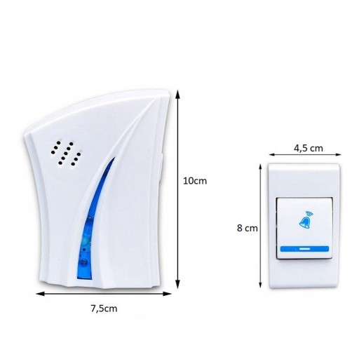 Dzwonek o nowoczesnym wzornictwie z przyciskiem bezprzewodowym nie wymagającym stałego zasilania. Możesz zapomnieć o ciągnięciu kabli i robieniu otworów w ścianie. Posiada 32 melodie do wyboru a głośność to aż 110 dB przez co jest słyszalny z każdego pomieszczenia przy czym dźwięk pozostaje miły dla uszu.