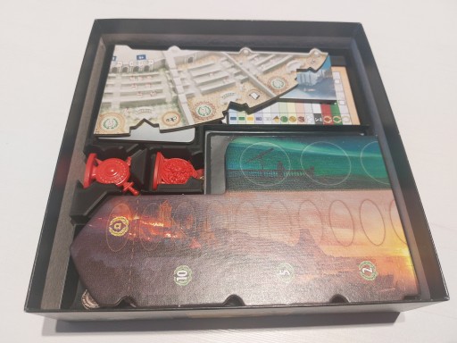 Organizuje komponenty podstawki wraz z dodatkami Agora i Panteon, WSZYSTKO W JEDNYM PUDLE!! Mieści karty w koszulkach, również premium.