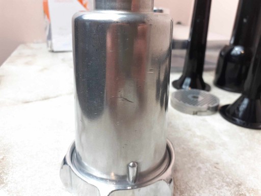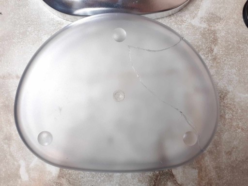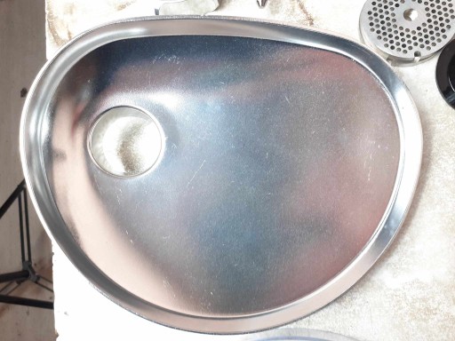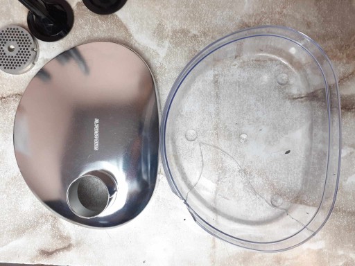 maszynka posiada klejoną krawędź i podstawe przezroczystego pojemnika na zmielone mięso, która uległa pęknięciu podczas transportu