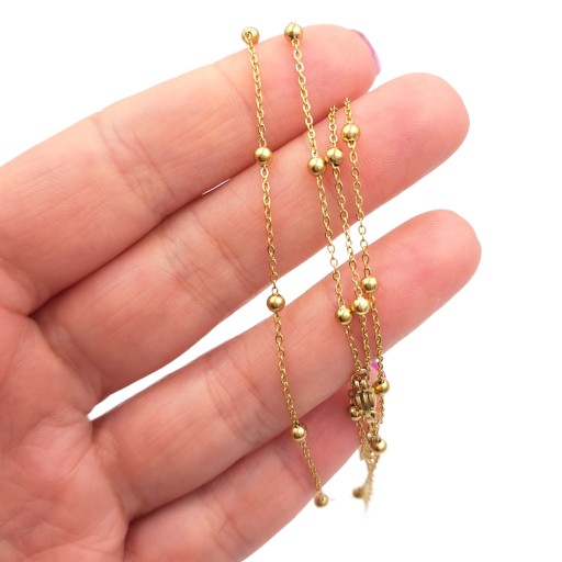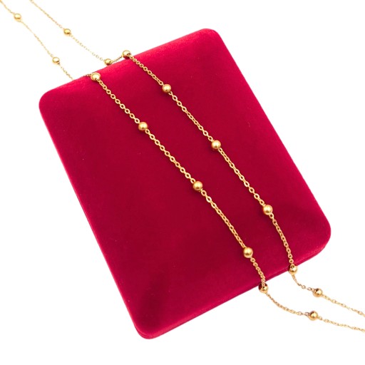 ŁAŃCUSZEK KULECZKI ZŁOTY STAL CHIRURGICZNA NIERDZEWNA KULKI 42cm NASZYJNIK