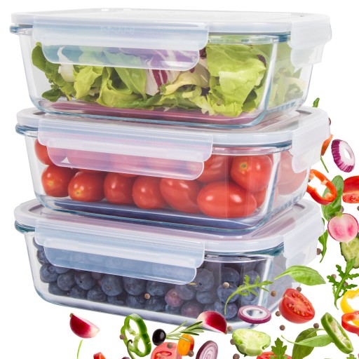 - Zestaw 3 szklanych pojemników na żywność do wszechstronnego zastosowania