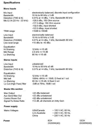 - 12 kanałów wejściowych (8 MONO + 2 STEREO)