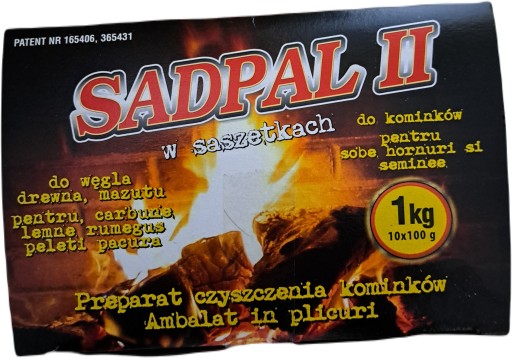 Po rozgrzaniu przewodów kominowych wrzucić 1 saszetkę Sadpalu