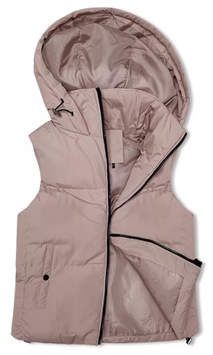 Krótka kamizelka damska ze stójką i kapturem J Style różowa (5M3151-46) - L (40)
