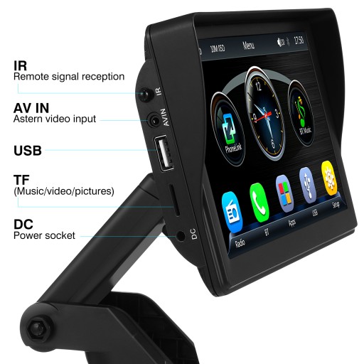 - 7-calowy odtwarzacz MP5 do urządzenia multimedialnego, który oferuje szereg funkcji napędzających z jazdy. Dzięki tej konstrukcji jest możliwe przenoszenie i urządzenia, co jest możliwe w przypadku każdego samochodu. Bezprzewodowe połączenie umożliwia podłączenie telefonu i dostęp do funkcji szeregowej.