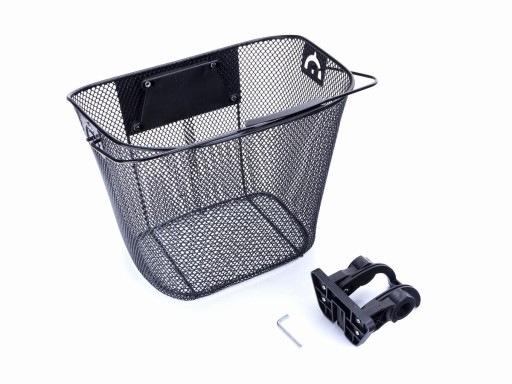 Koszyk jest dość pojemny, zmieści torbę i plecak, a także małe zakupy. Dodatkowo posiada wygodną rączkę do przenoszenia. Pasuje do większości rowerów ze średnicą kierownicy do 2,5cm.
