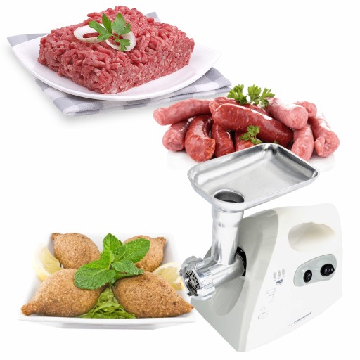 Posiada też dodatkowe nasadki do robienia kiełbasy, a także "kebbe". Gumowe nóżki antypoślizgowe gwarantują stabilną i bezpieczną pracę urządzenia.