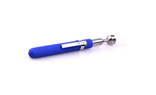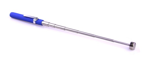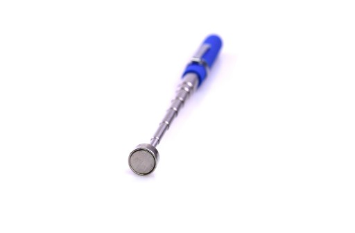Teleskopowe ramię o długości 60cm zakończone magnesem do unoszenia metalowych przedmiotów, takich jak śruby, nakrętki, podkładki, itp.