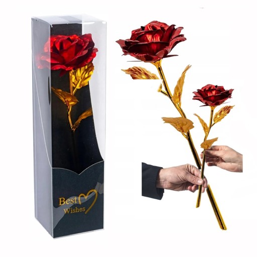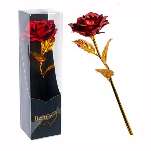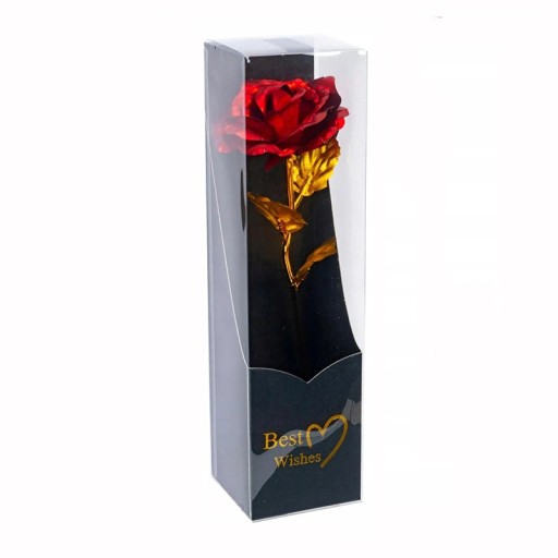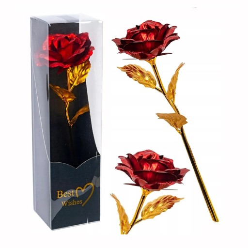 Красно-золотая роза в подарочной упаковке на Рождество и особые случаи.