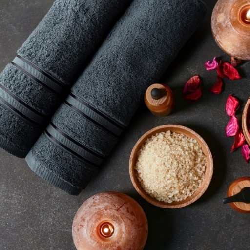 Szerokość: 30 cm, długość: 50 cm, kolor: stalowy, Gramatura: 480 GSM, Skład: 100% bawełna; część ozdobna: 94% bawełna, 6% poliester