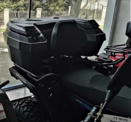 Kufer jest budżetową propozycją względem swoich droższych konkurentów na rynku skierowaną do osób, które nie chcą przepłacać za jego zakup, a chcą mieć równie funkcjonalny i trwały produkt. Skrzynia jest wykonana z dobrej jakości tworzywa polietylenowego w kolorze czarnym, co gwarantuje odporność na uderzenia mechaniczne czy też warunki atmosferyczne. Bryła kufra posiada bardzo nowoczesny oraz agresywny wygląd w postaci różnego typu wcięć aerodynamicznych, przez co idealnie komponuje się z najnowszymi na rynku pojazdami ATV. Klapa zabezpieczona specjalną uszczelką silikonową zamykana jest za pomocą 2x metalowych oraz wygodnych zatrzasków, co przekłada się na pewne zapięcie podczas jazdy, natomiast całość posiada możliwość zamknięcia za pomocą kluczyka, przez co można bezpiecznie pozostawić pojazd poza nasza obecnością. Z tyłu opcjonalnie można nakleić 2x odblaski w kolorze czerwonym, które zwiększą widoczność obrysu pojazdu w nocy.