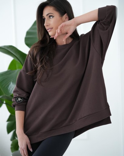 Modna bluza oversize dla fanek sportowej elegancji, lubiących styl i wygodę. Stylowa bluza damska powstała w Polsce przez markę Me Gusta z komfortowej w noszenie dzianiny dresowej (grubsza pętelka od spodu).