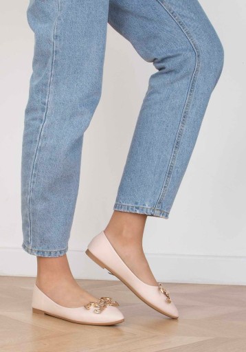 PÓŁBUTY BEŻOWE EKOSKÓRA BALERINKI ZŁOTE ZDOBIENIE 39