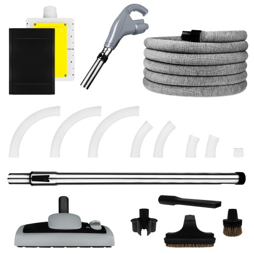 Zestaw przeznaczony do samodzielnego montażu gniazda RX do centralnego odkurzacza, skompletowany z najwyższej jakości kształtek, kasety oraz akcesoriów sprzątających.