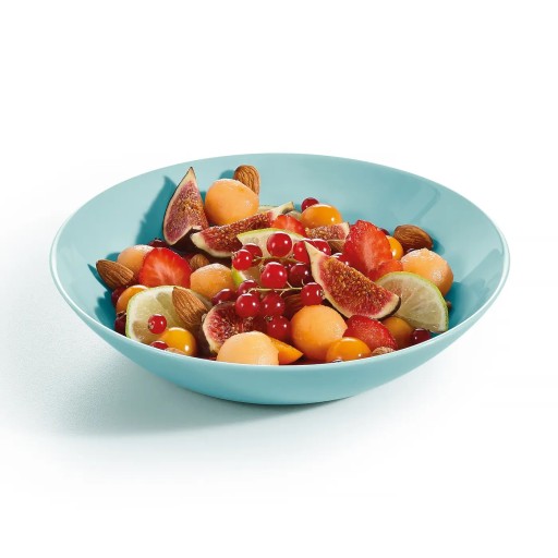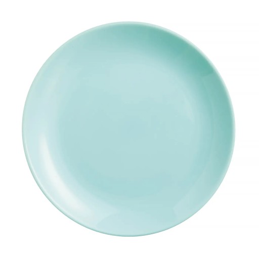 Komplet talerzy turkusowych dla 6 osób z serii Diwali. Wykonany z hartowanego szkła barwionego na turkusowy przez francuską markę Luminarc. Talerze charakteryzują się podwyższoną odpornością na uszkodzenia mechaniczne. Wszystkie elementy zestawu nadają się do zmywarek i kuchni mikrofalowych. Oryginalny produkt made in France.