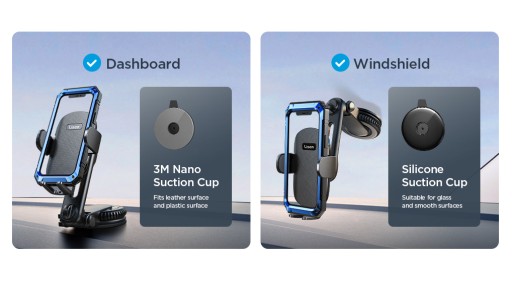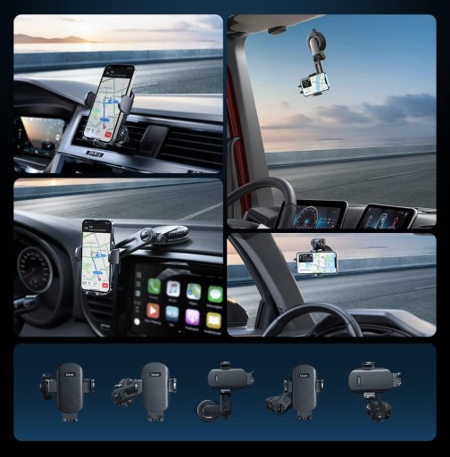 Lisen H736 - Najmocniejszy uchwyt samochodowy na telefon 3w1 na kratkę wentylacyjną i kokpit/szybę, dwie specjalistyczne przyssawki w zestawie, pełna regulacja!