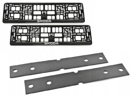 РАМКИ РАМА ДЛЯ НОМЕРНЫХ ЗНАКОВ SKODA + НАКЛАДКИ НА РАМУ - КОМПЛЕКТ