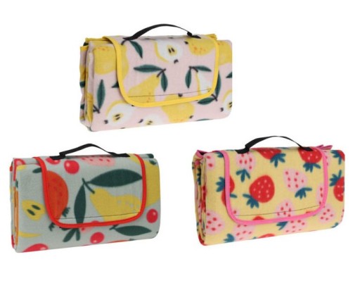Koc można łatwo złożyć, zajmuje przez to niewiele miejsca a doszyta rączka oraz pasek na ramię ułatwiają jego przenoszenie.