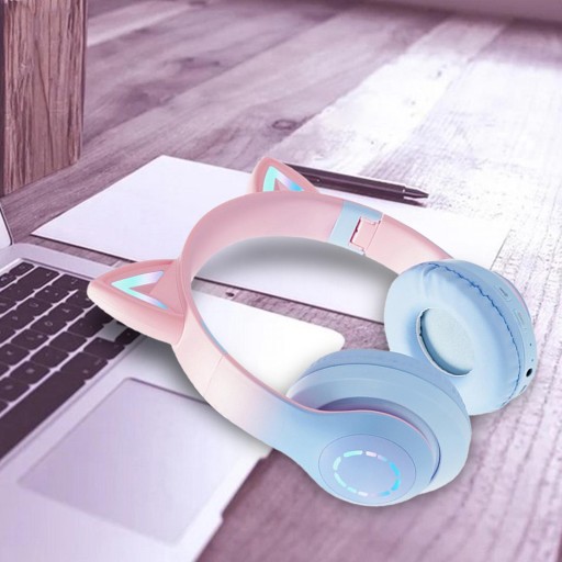 Słuchawki nauszne LED Regulowana wiązka światła Stereo do gier Komputer Różowy, niebieski