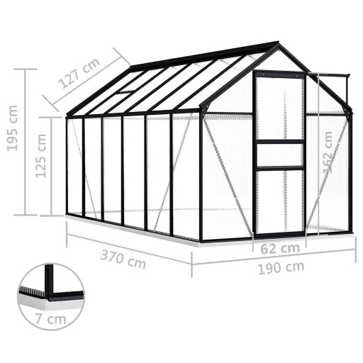 vidaXL Szklarnia z ramą podstawy, antracytowa, aluminium, 7,03 m³