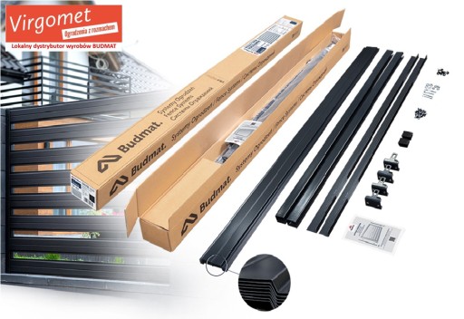 Zestaw 1 przęsła zawiera: 8 sztuk sztachet o długości 2000 mm , 2 sztuki słupków (montażowych) w kolorze grafitowym RAL 7016 połysk o długości 1,2 mb, 4 sztuki mocowań słupków do słupka murowanego lub stalowego w kolorze RAL 7016, zatyczki słupków oraz blachowkręty niezbędne do zamocowania sztachet do żerdzi, maskownice. Całość zapakowana w 1 opakowaniu. Do zestawu załączona instrukcja montażu.