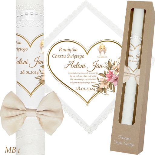 Pudełko posiada praktyczne okienko z folią, które pozwala na podziwianie świecy bez potrzeby jej wyjmowania. Idealnie pomieści również szatkę do chrztu, dbając o estetyczne przechowywanie obu pamiątek. Wyjątkowy nadruk "Pamiątka Chrztu Świętego" nadaje naszemu produktowi wyjątkowego charakteru, czyniąc go idealnym prezentem na tę wyjątkową okazję.