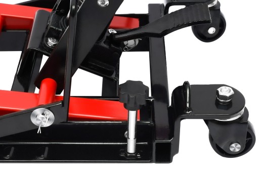 Podnośnik niskoprofilowy o maksymalnym udźwigu 680kg doskonale sprawdzi się przy podnoszeniu i opuszczaniu pojazdów motocyklowych, ATV, traktorków do koszenia trawy oraz innych małych pojazdów w garażach i warsztatach. Prosty w obsłudze, lekki i przenośny pozwoli na wymianę części samochodowych oraz różnego rodzaju naprawy w sposób bezpieczny i wydajny. Wysokiej jakości stal użyta do wykonania konstrukcji zapewni jej trwałość i solidność. Gumowe elementy pozwolą ochronić ramę pojazdu. Wygodna rączka usprawni pozycjonowanie oraz możliwość manewrowania. Wyposażenie w 2 koła stałe i 2 obrotowe ułatwi poruszanie się po warsztacie. Możliwość złożenia na płasko zapewni oszczędność przestrzeni.